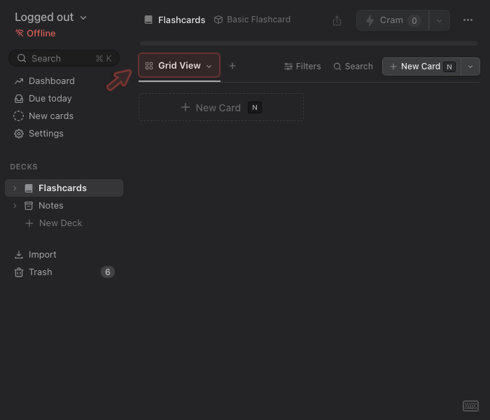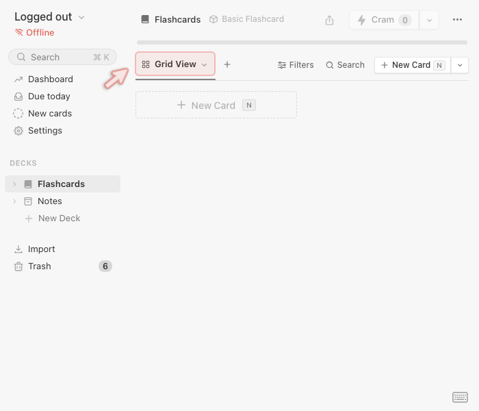 Only cards visible in the selected view will appear in the cram session. For more information on cramming, check out the Cramming section for more information.