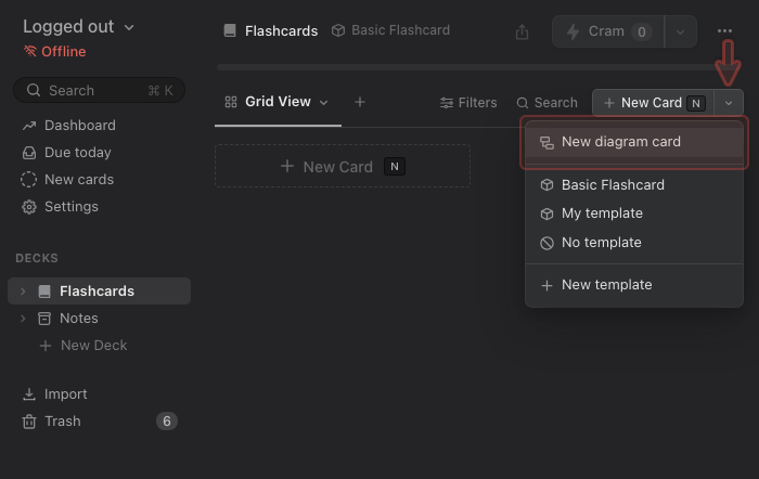 Diagram cards work like cloze deletions but for parts of an image. Instead of hidden text, each masked area becomes a recall prompt.