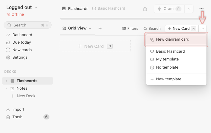 Diagram cards work like cloze deletions but for parts of an image. Instead of hidden text, each masked area becomes a recall prompt.